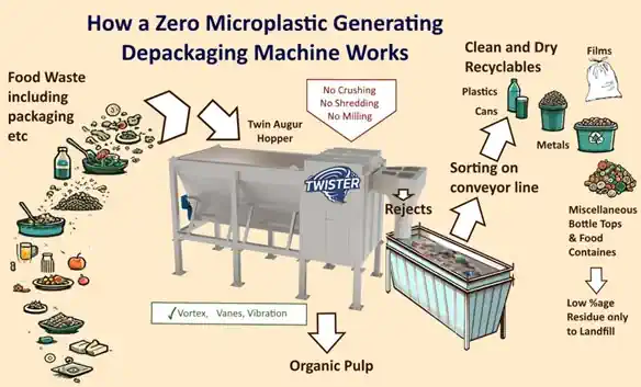 - Large-scale systems like the Twister Depackager and Separator have the capacity to process large tonnages of waste per day, even with up to 30% contamination in the feed.